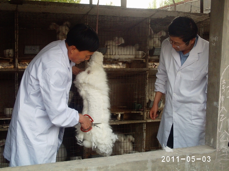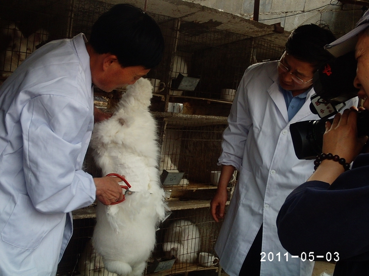 電視臺(tái)現(xiàn)場(chǎng)采訪山東省蒙陰鑫華種兔場(chǎng)廠長(zhǎng)公為迎